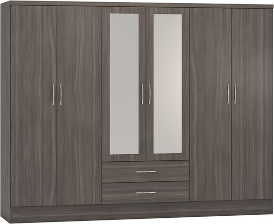 Nevada 6 Door 2 Drawer Mirrored Wardrobe
