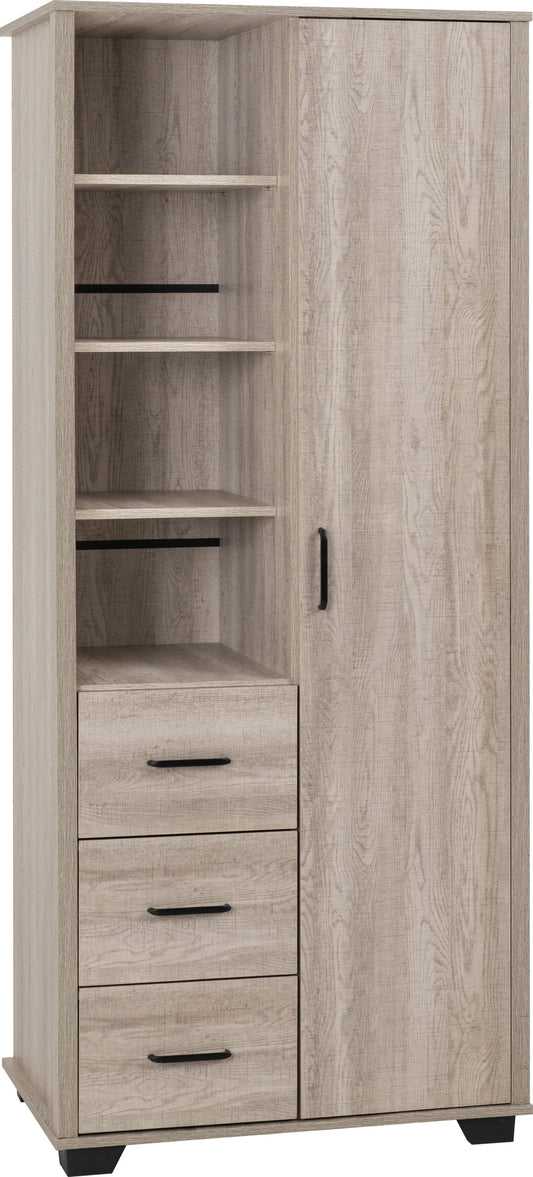 Oliver 1 Door 3 Drawer Open Shelf Wardrobe
