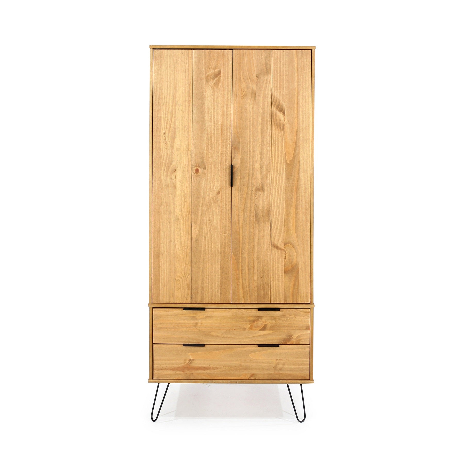 Unite style and function with the Augusta Wardrobe. Featuring sleek industrial hairpin legs and real wood construction with a charming antique finish. Keep your space organized and elevate your decor with this unique wardrobe. (No more digging through piles!!)