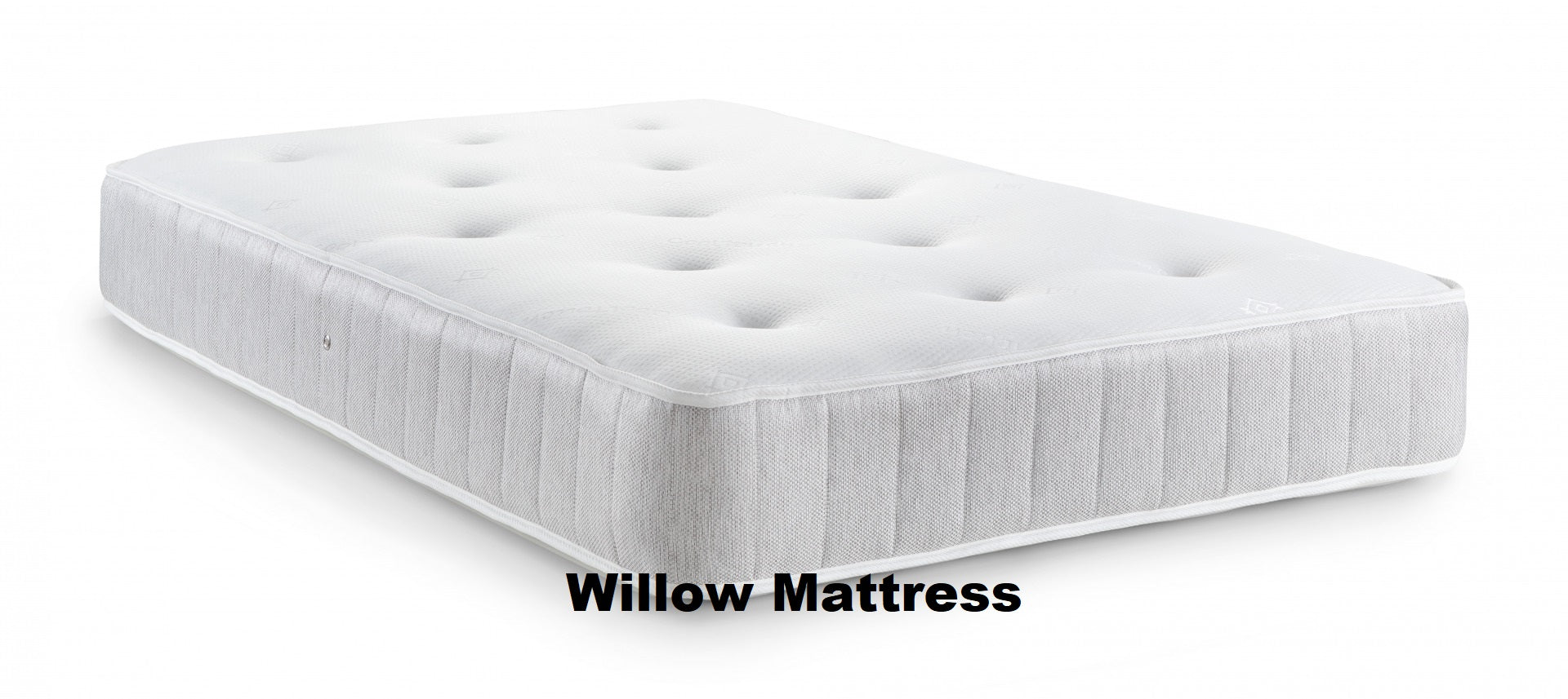 Willow Mattress: A 10” medium density with 8″ ortho sprung memory and 2″ memory foam topper.