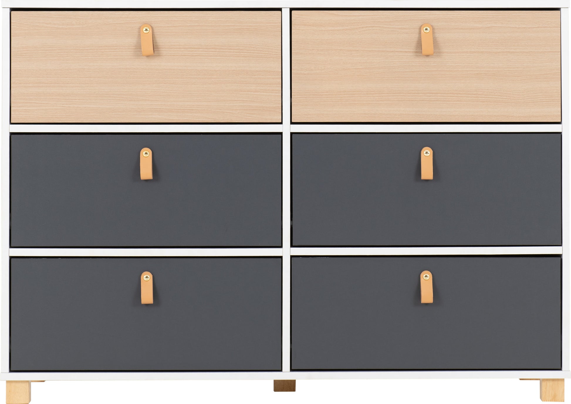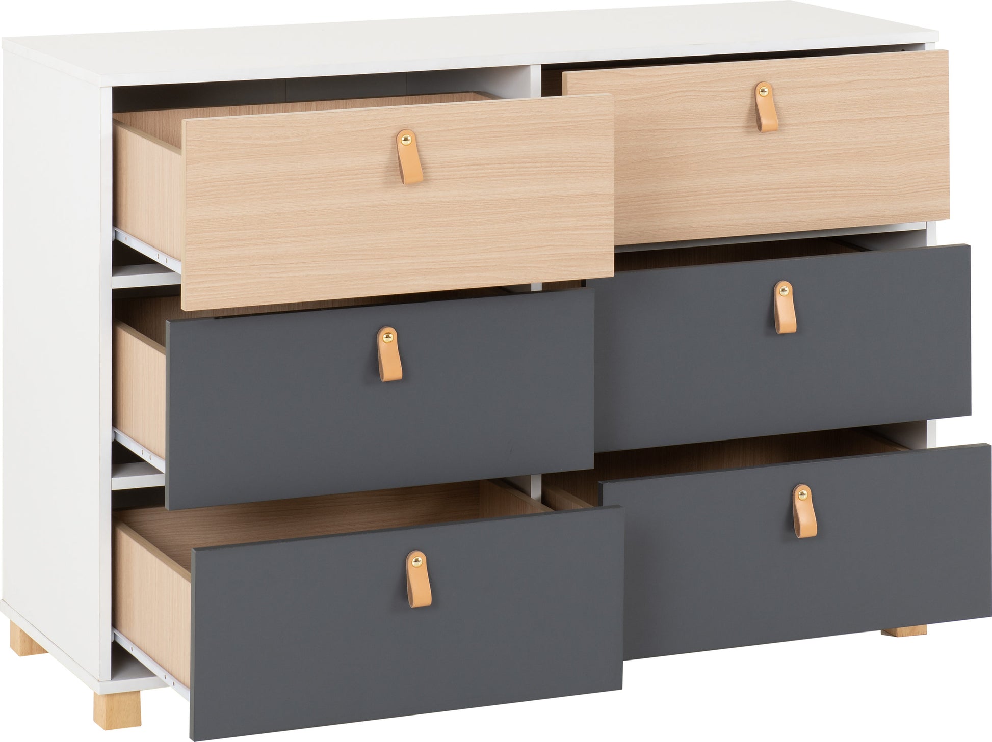 Introducing the Brooklyn 6 Drawer Chest - the perfect blend of style and functionality! With its sleek white and grey design and beautiful oak effect, this chest will add a modern touch to any room. Plus, the easy to use pull handles make accessing your items a breeze. Storage just got stylish!