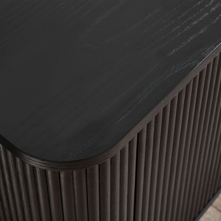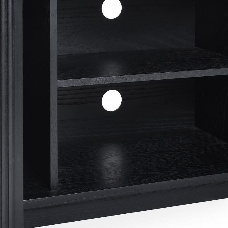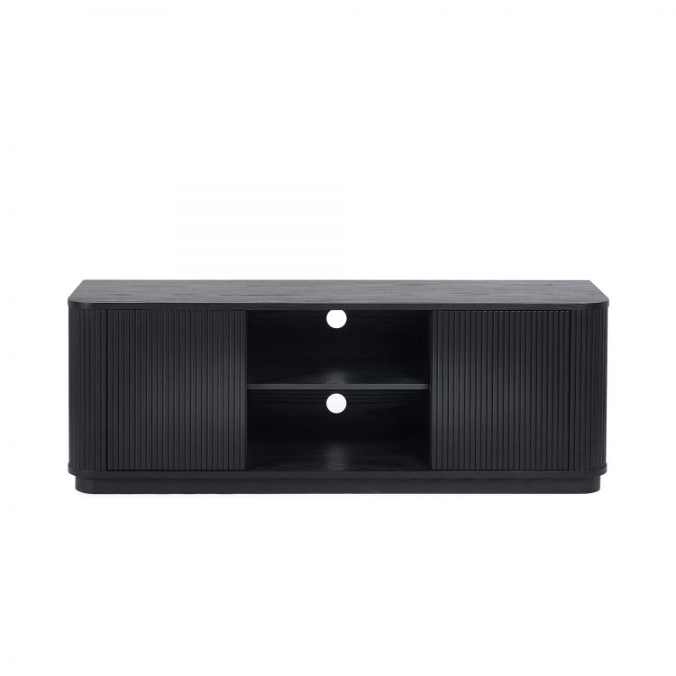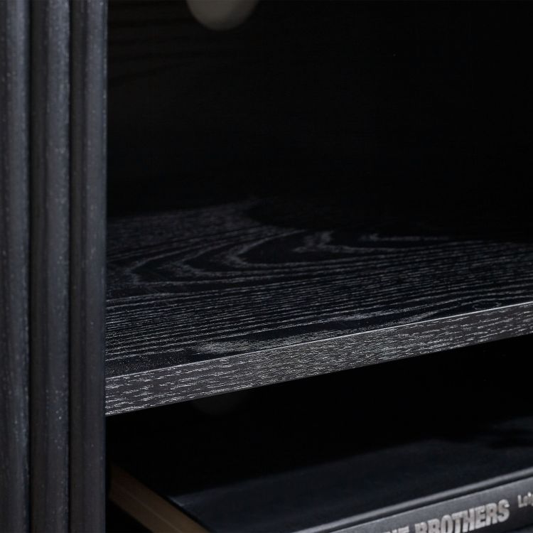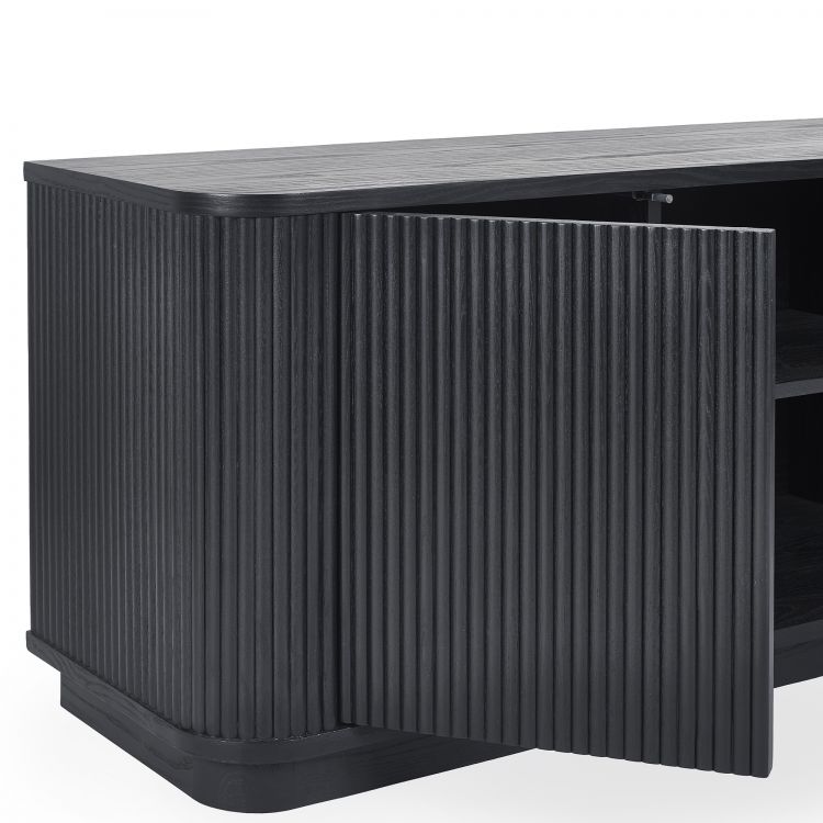 Transform your living space into a haven of luxury with the Louis TV Unit in Black. This opulent addition seamlessly blends sophisticated design with practical functionality. The rich matt black finish, adorned with distinctive fluted detailing, adds an exquisite touch to your home decor. The two push-touch cupboards discreetly store your media accessories, while the central shelving space provides an elegant showcase for your possessions. Minimal assembly is required, ensuring a hassle-free setup process.