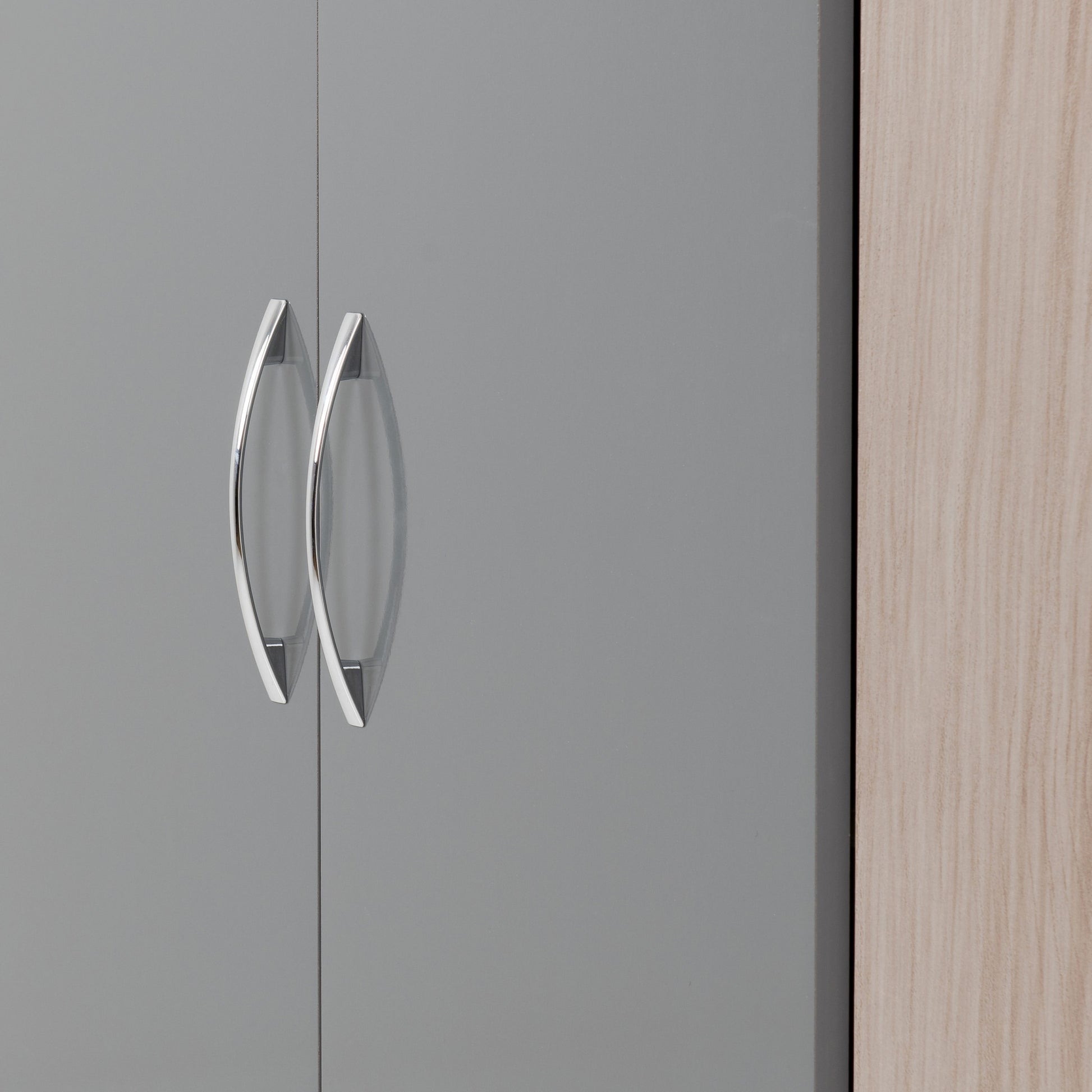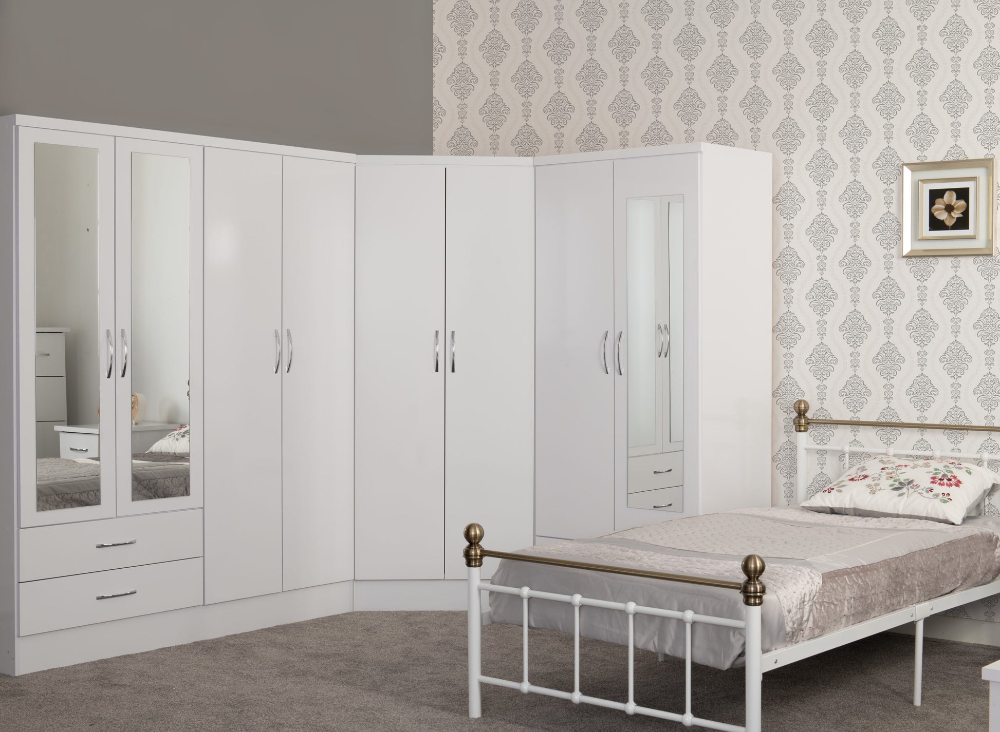 Introducing the Nevada 2 Door Corner Wardrobe. This luxurious wardrobe boasts a unique design, with 2 doors that beautifully wrap around the corner of your room. With ample storage space and a sleek, modern aesthetic, it is the perfect addition to any upscale bedroom. Experience the ultimate in elegance and functionality with the Nevada 2 Door Corner Wardrobe.