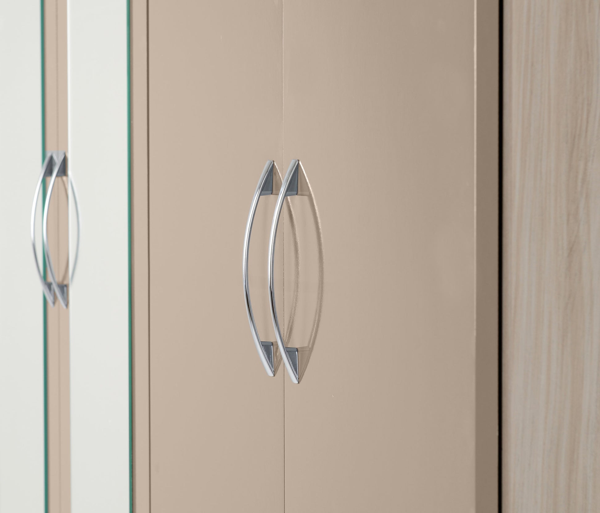 Introduce luxury and sophistication to your bedroom with the Nevada 6 door wardrobe. Featuring two drawers and ample storage space, this elegant wardrobe also includes mirrored doors for added functionality and style. Organize your belongings in style with this exclusive wardrobe.