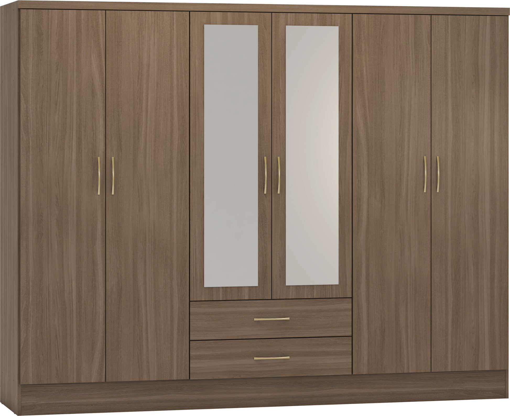Nevada 6 Door 2 Drawer Mirrored Wardrobe