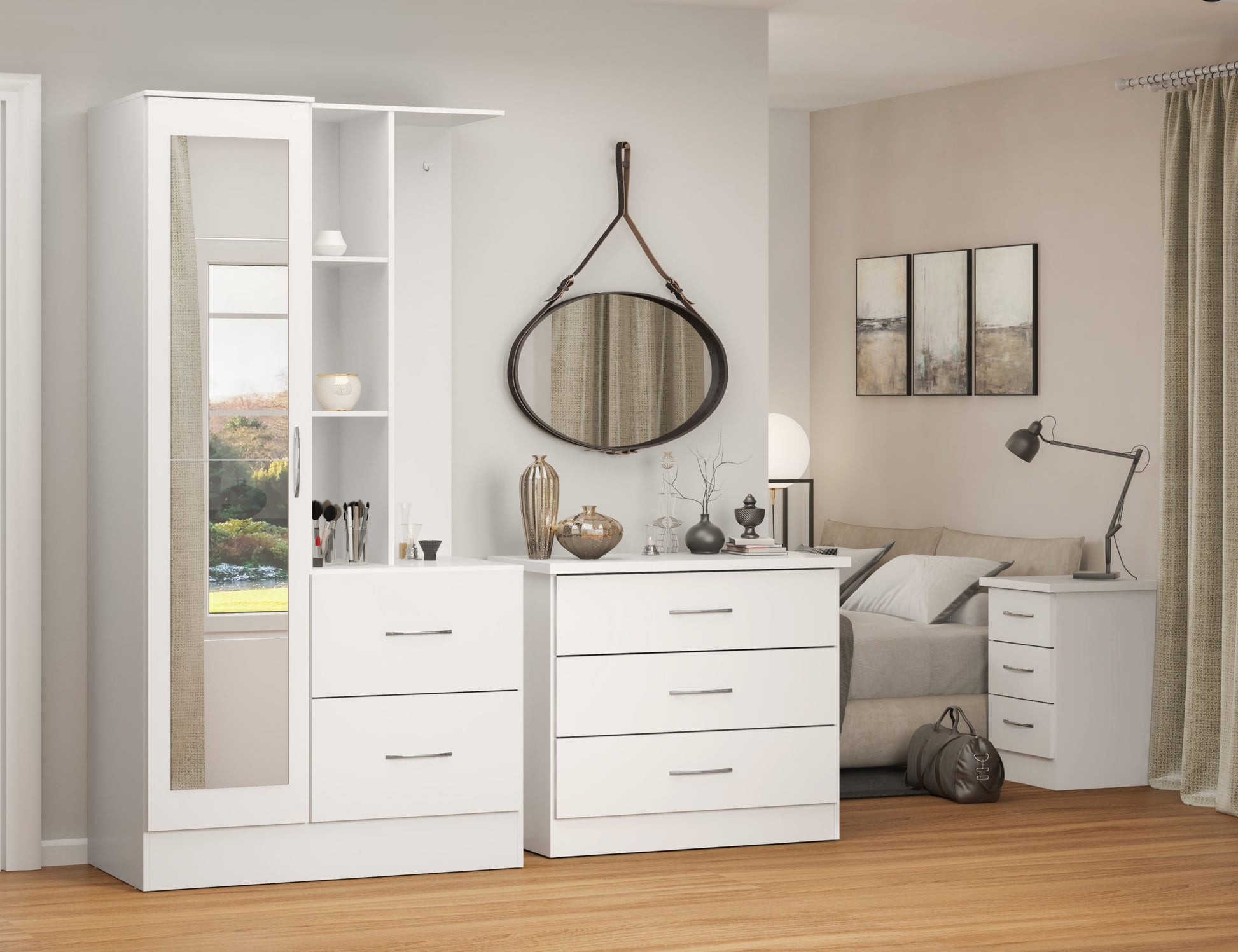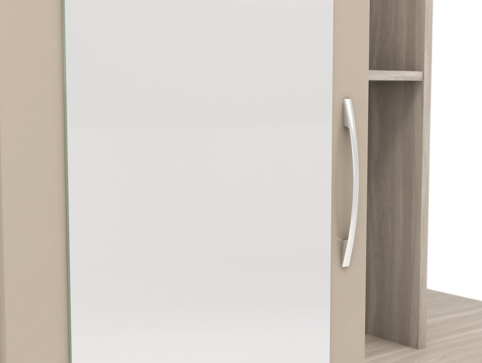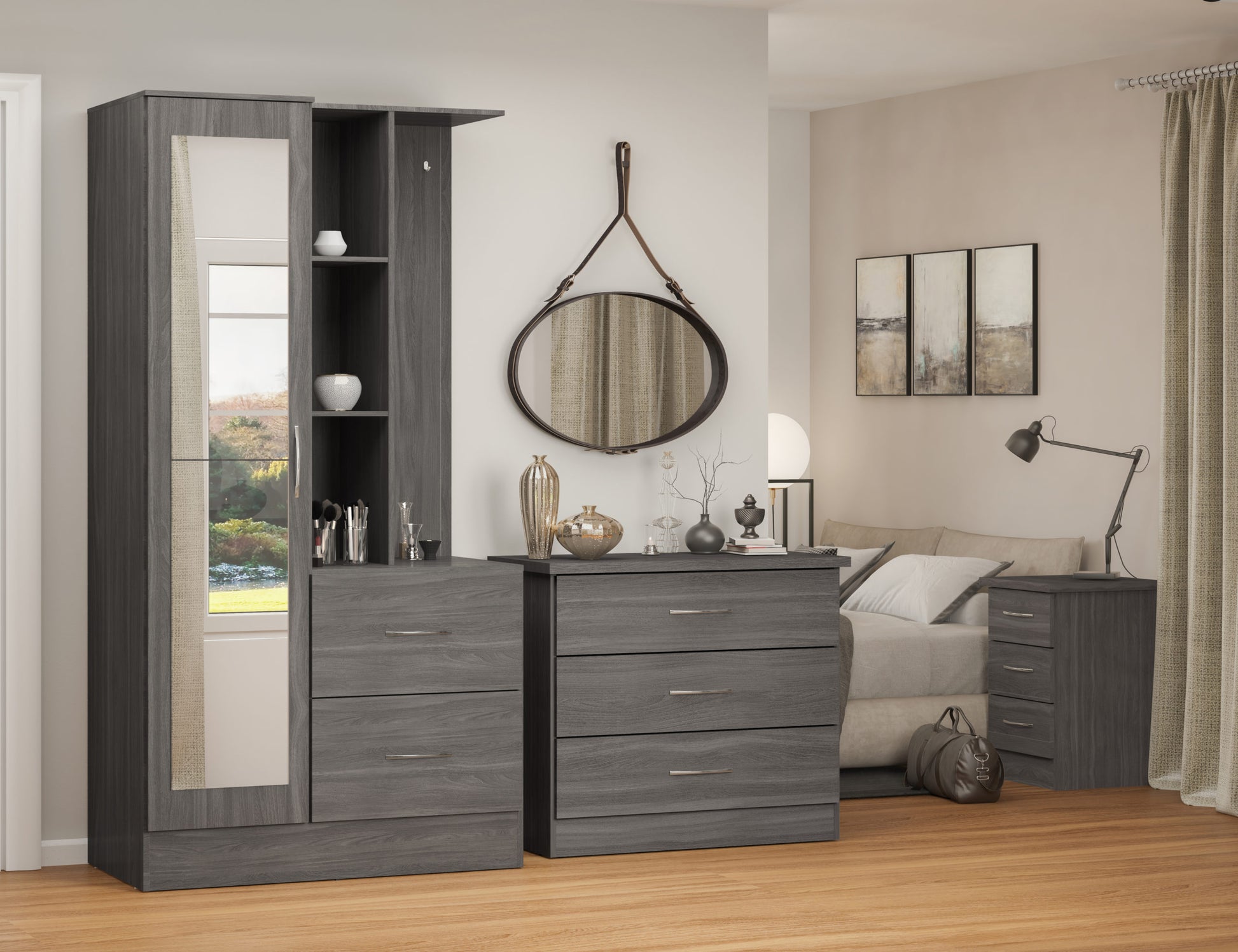 Get ready to transform your bedroom with the Nevada Mirrored Open Shelf Wardrobe. This wardrobe not only provides ample space for your clothes, but the open shelf and mirror also add a touch of modern style to your room. Say hello to a clutter-free and stylish bedroom!