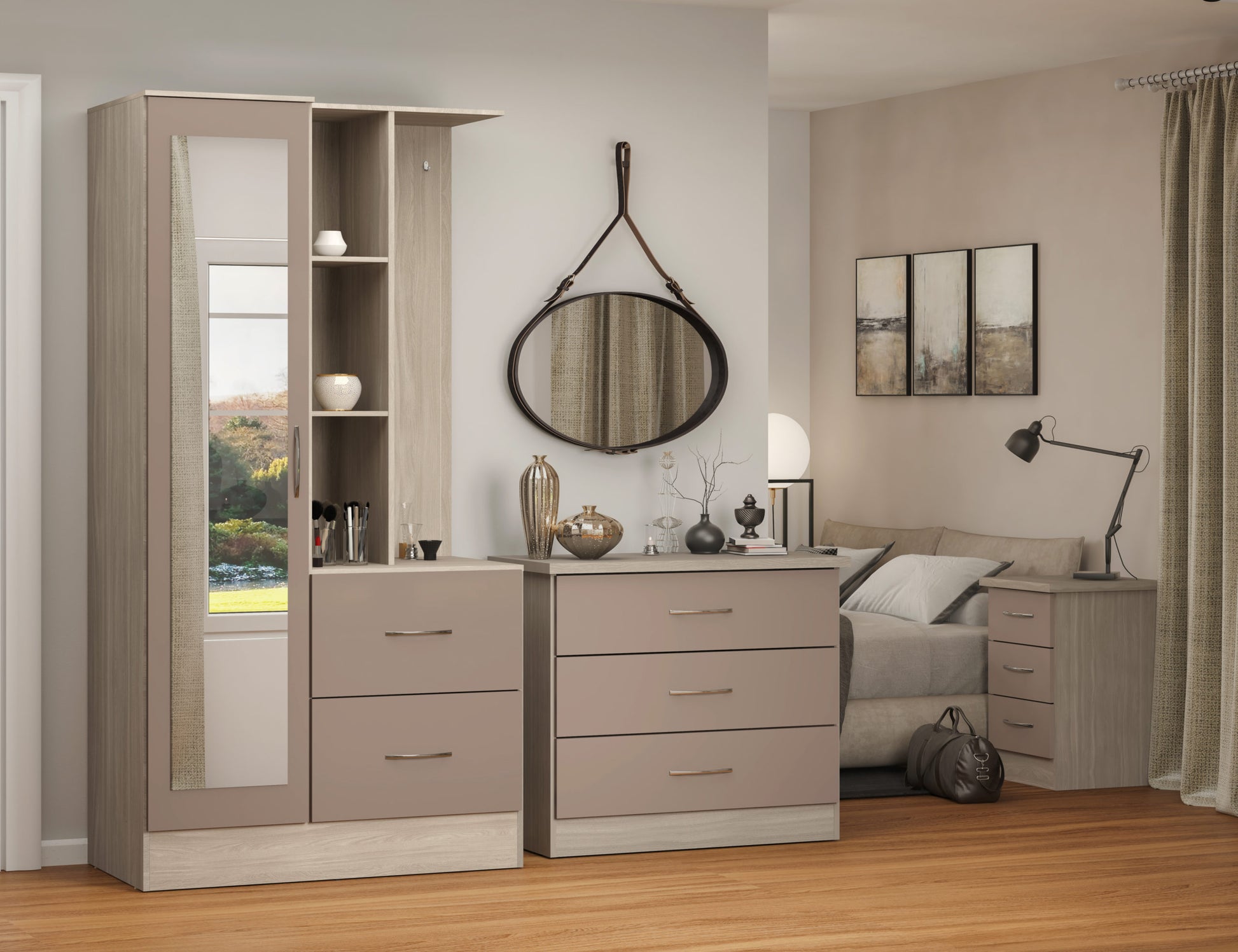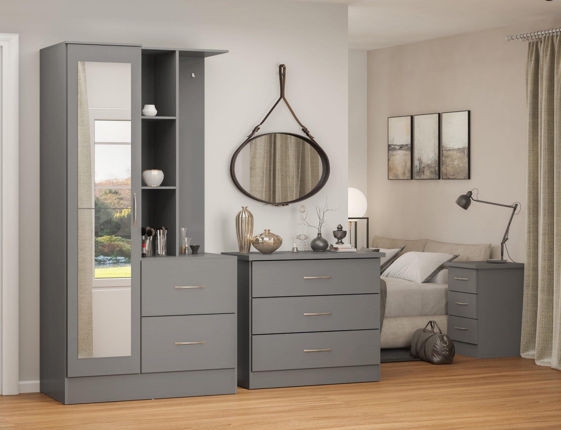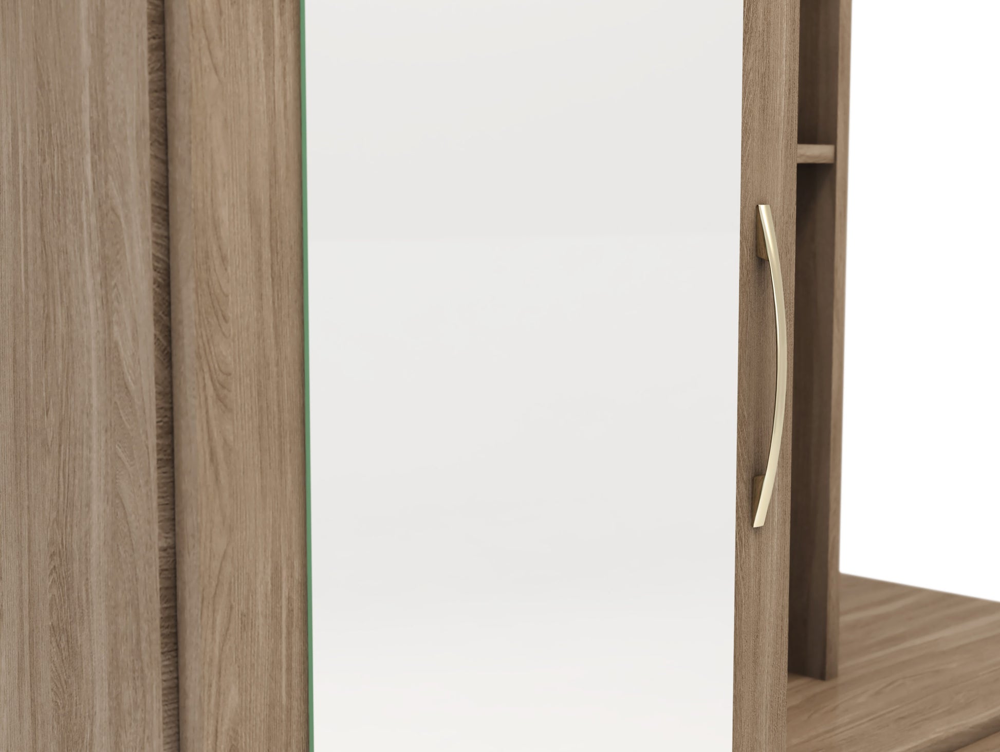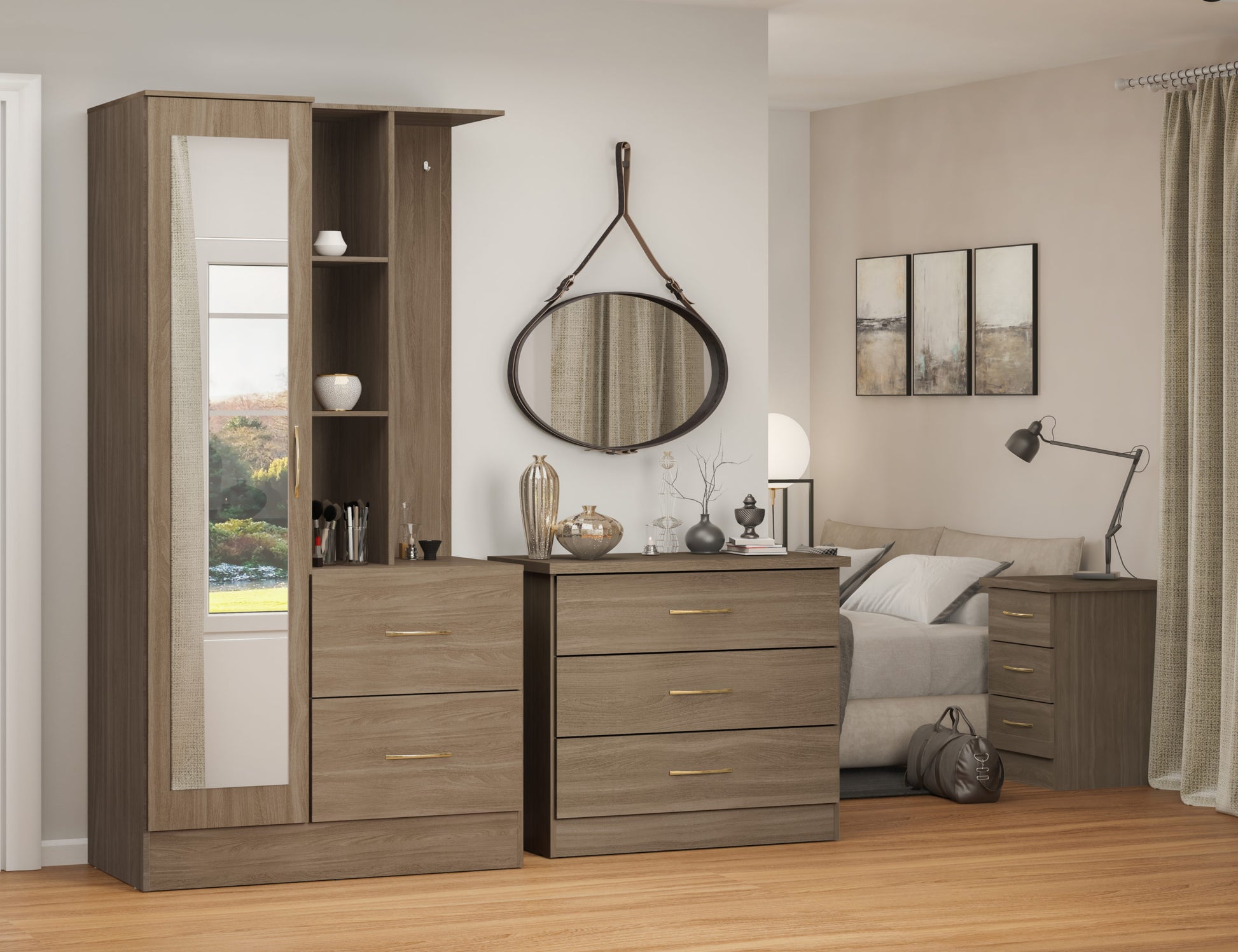 Get ready to transform your bedroom with the Nevada Mirrored Open Shelf Wardrobe. This wardrobe not only provides ample space for your clothes, but the open shelf and mirror also add a touch of modern style to your room. Say hello to a clutter-free and stylish bedroom!