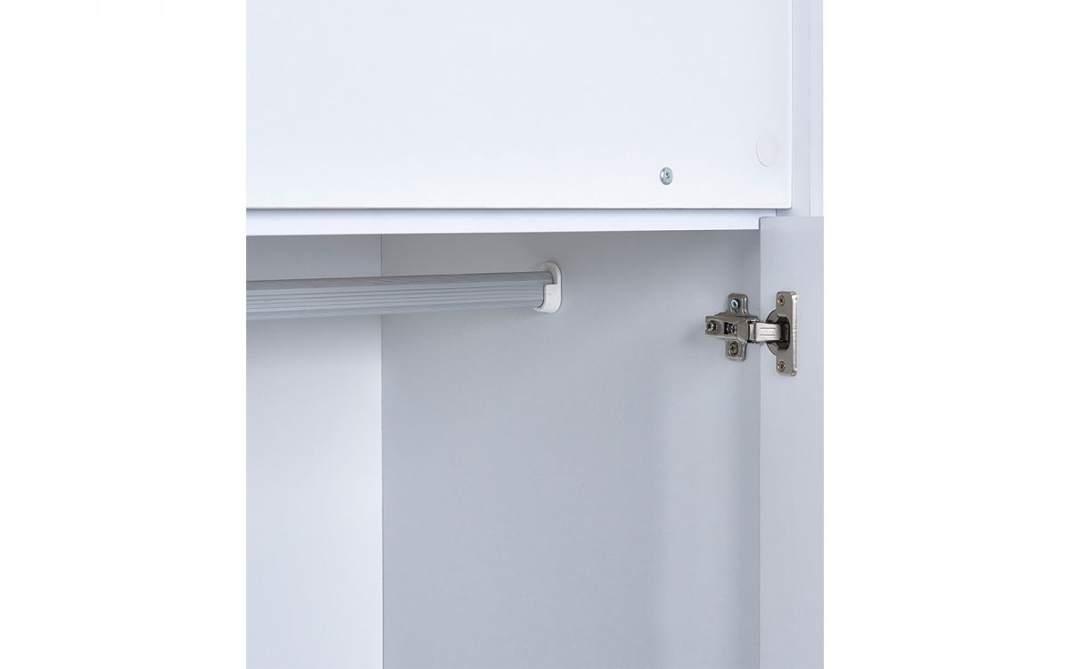 - Finished in matt white with woodgrain accents